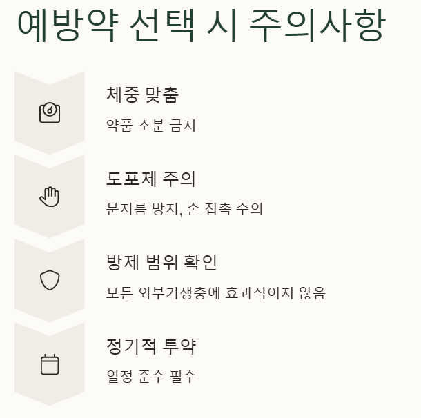 심장사상충 예방약을 선택할 때는 몇 가지 중요한 점을 고려해야 합니다.