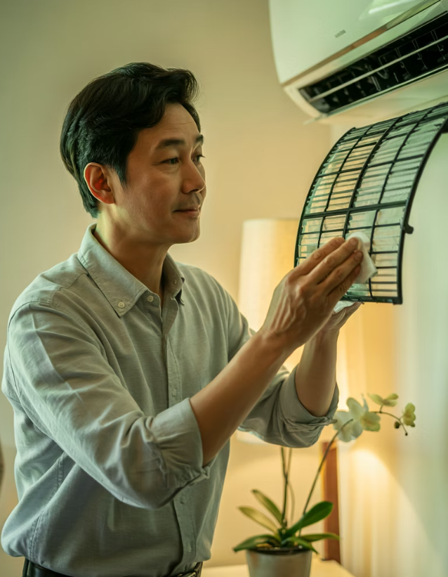 전문 업체의 청소 후에도 일상적인 관리는 필수입니다. 필터는 2주에 1회 정도 물로 세척 후 그늘에서 완전히 건조하는 것을 추천드리고 에어컨 끄기 전 송풍 모드로 30분 정도 작동시켜 내부 습기를 제거하는 것도 좋은 방법입니다. 장기간 미사용 시에는 커버로 덮어 먼지 유입을 방지하세요.