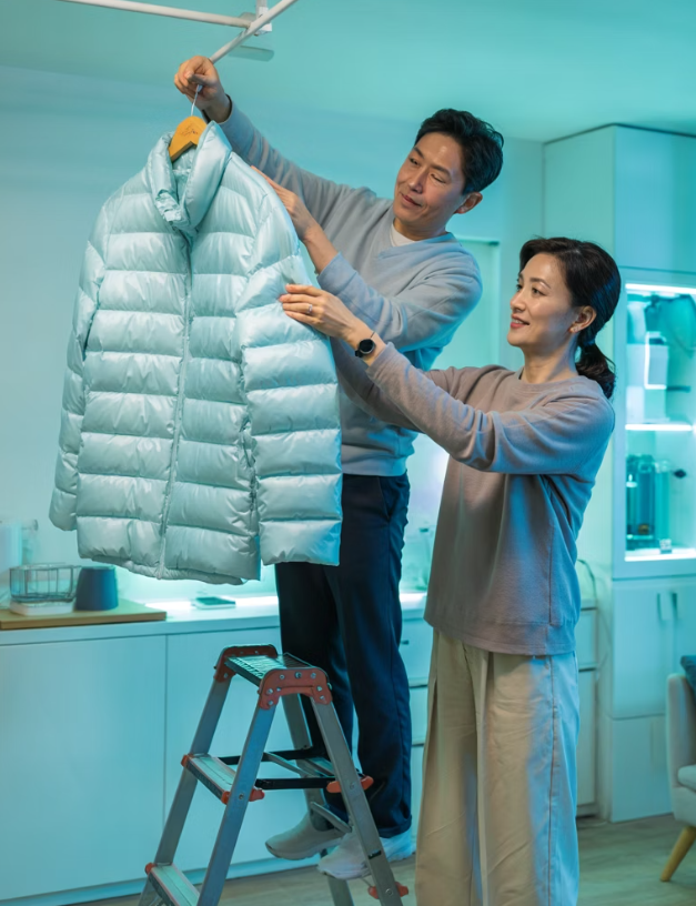 - 공기순환이 원활한 넓은 옷걸이에 걸거나 압축하지 않은 상태로 보관합니다