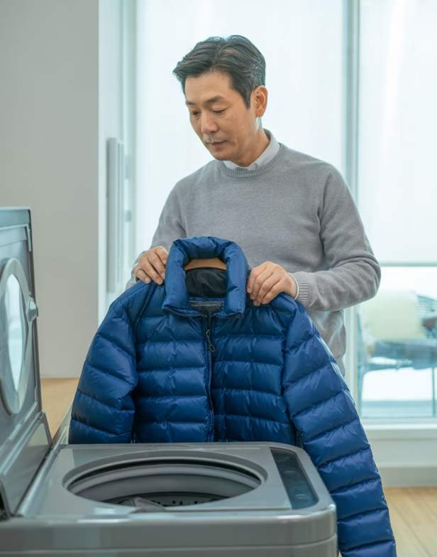 세탁기 사용 시 패딩 손상을 최소화하는 것이 중요합니다. 홈클리닝이 허용된 제품은 다음과 같이 관리해보세요.