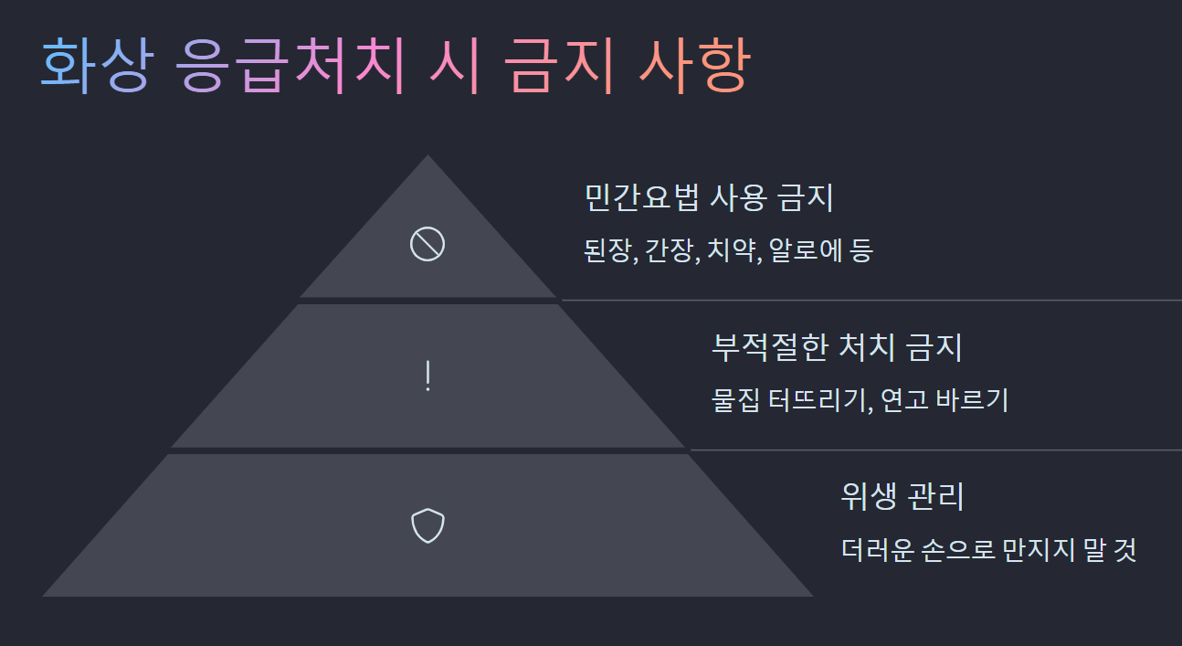 화상 응급처치 시 절대 하지 말아야 할 행동